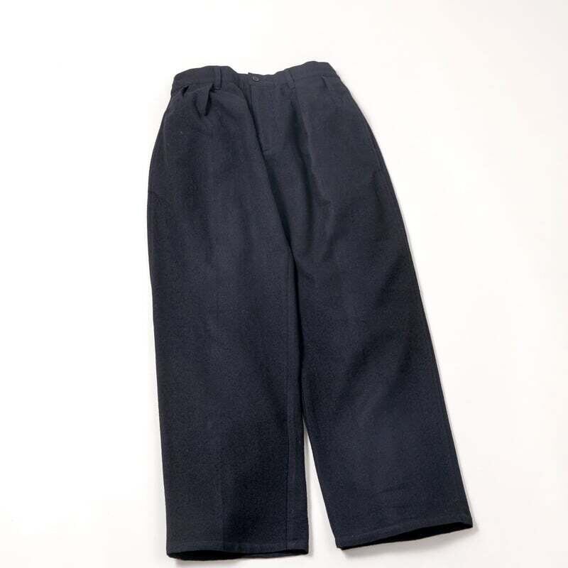 ダブルプリーツのゆったりとした大好きなアメリカのあのパンツに「これがあったらいいのに」を詰め込みました。ベルトもしたいしイージーパンツみたいに楽に穿きたい!のでベルトループ、ウエスト裏ゴム、ドロストコードの3点盛り。いろんな靴に合うように裾のテーパードは控えめに。ファッションには色んなサイクルがあって楽しいですが、どんな時でも目立たず、落ち着いて、穿く人の半歩後ろにそっといるような「あなたにとってのクラシック」になれれば本望です。